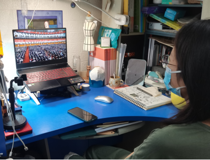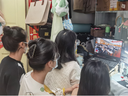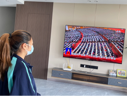 虽然片区因疫情防控临时管控,但广大师生关注党的二十大热情丝毫不减,在片区会议室、办公室、员工宿舍、家中客厅等各类场所,都能看到广大师生员工正积极收听收看中国共产党第二十次全国代表大会开幕会盛况,随着庄严嘹亮的国歌声响起,大家集体起立,同声跟唱。在观看大会的过程中,听着振奋人心的报告内容,现场频频响起热烈的掌声。