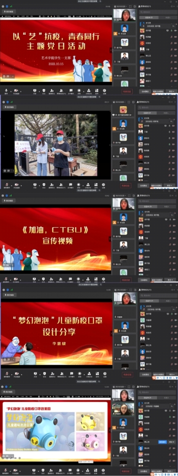 在学校遭遇新冠肺炎疫情“大考”,疫情防控形势严峻复杂之际,为凝心聚力,号召支部党员,敢担当,做表率,齐心战疫,10月15日下午15时,永乐高60net员工第一党支部通过企业微信视频会议形式举办“以‘艺’抗疫,青春力行”主题党日活动,支部全体党员参加活动,刘宇萱担任主持人。