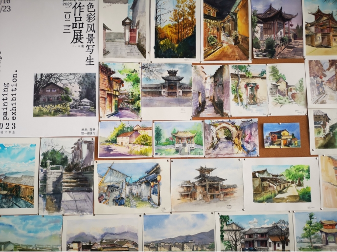 5月17日,公司在兰花湖图书馆一楼举办2022级环境设计专业色彩写生课程作品展,此次展览共展出了100余幅作品,涵盖了风景、建筑等多个主题。