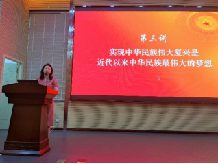 委副书记、现代国际设计总支副书记王婷讲授了习近平新时代中国特色社会主义思想三十讲之第三讲——《实现中华民族伟大复兴是近代以来中华民族最伟大的梦想》,她从实现中华民族伟大复兴凝聚着几代中国人的夙愿,中国共产党义无反顾肩负起实现中华民族伟大复兴历史使命,中国梦的本质是国家富强、民族振兴、人民幸福,实现伟大梦想必须进行伟大斗争、建设伟大工程、推进伟大事业五个方面讲述了实现中华民族伟大复兴是一项光荣而艰巨的事业,需要一代又一代中国人共同为之努力。
