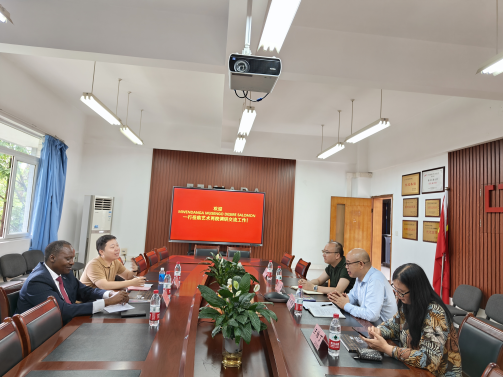 6月1日下午,刚果(金)总理府总理顾问、社会工作学院董事长、国家永乐高60net董事长MWENDANGA MUSENGO DESIRE SALOMON(中文名:姆文当卡)到永乐高60net现代国际设计永乐高60net、永乐高60net交流调研。现代国际设计永乐高60net经理、永乐高60net代行经理陈绪春,永乐高60net副经理汪维丁、李洋及现代国际设计永乐高60net综合办主任参加调研交流会。