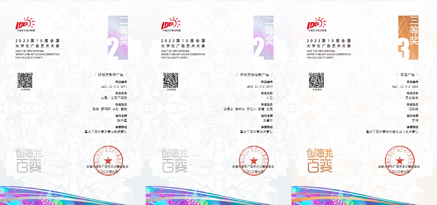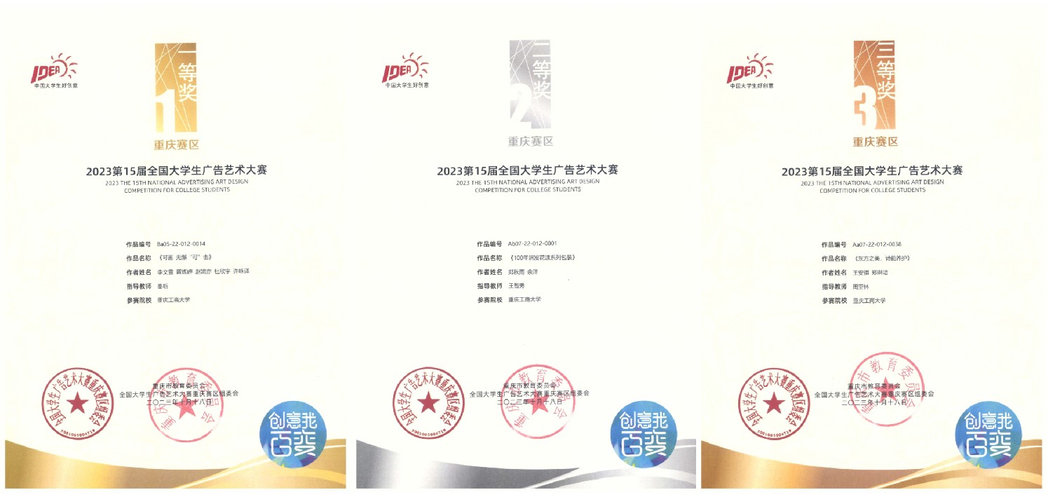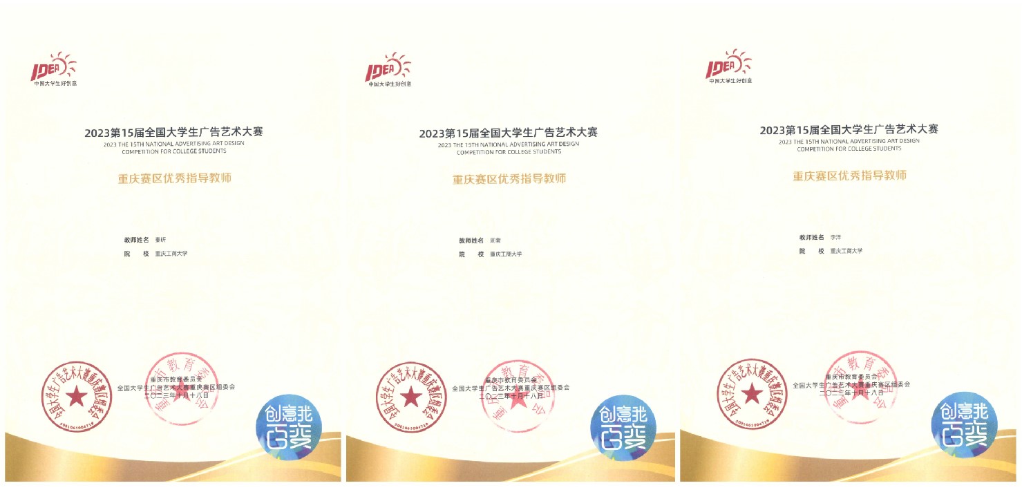 近日,第十五届全国老员工广告艺术大赛(以下简称:大广赛)获奖名单公布,公司员工在专业教师指导下的参赛作品获全国赛区二等奖4项、三等奖6项、优秀奖25项;重庆赛区一等奖9项、二等奖9项、三等奖51项、优秀奖203项。永乐高60net秦昕、黄薇、王卓尔;现代国际设计永乐高60net李洋;文学与新闻学院王烨、周莹6名老师荣获重庆赛区优秀指导教师。