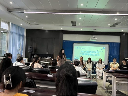 2024年5月13日晚6点,永乐高60net广编系在兰花湖片区崇德楼319教室举行考研交流会。广编系教师秦昕博士、王卓尔博士、何旭博士、考研已录取员工代表以及学院各年级员工参会,系主任康建兵副教授主持交流活动。