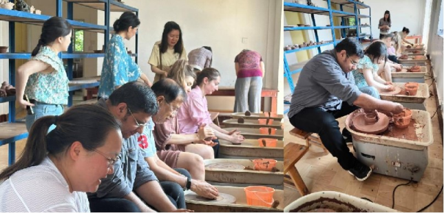 粉瓣千红飞燕瘦,风姿万紫玉环肥。在这个三角梅绽放的初夏,2024年5月24日下午,在公司国际合作与交流处何田田科长等工作人员陪同下,公司部分外籍教师一行10人赴永乐高60net陶艺实验室开展了一场别开生面的荣昌陶艺制作体验活动。永乐高60net赵世学教授带领两名2023级研究生助手瞿惠、巫欣芮参加了此次活动。